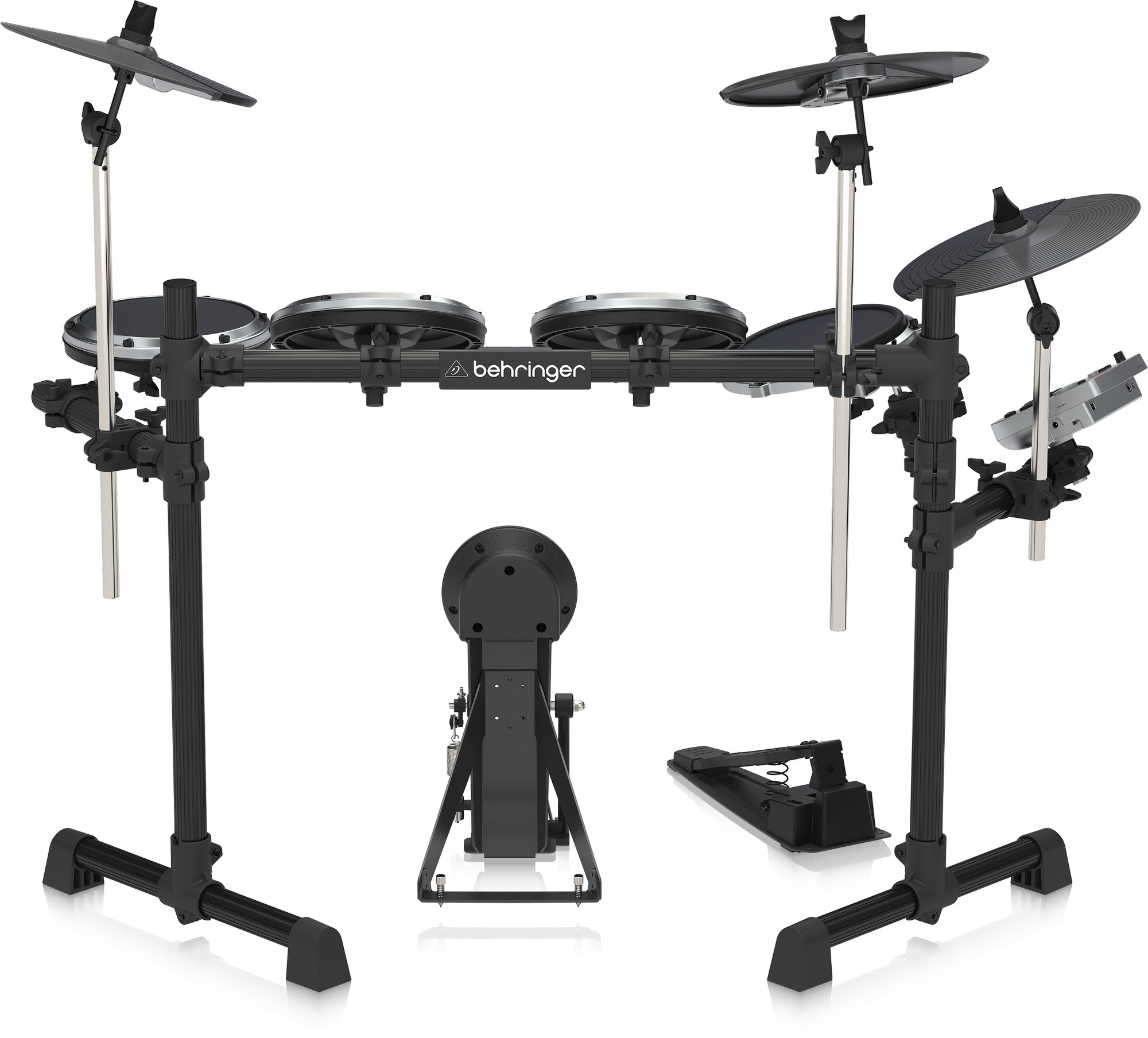 - Dual-zone snare and tom pads for drum head and rim playing techniques
