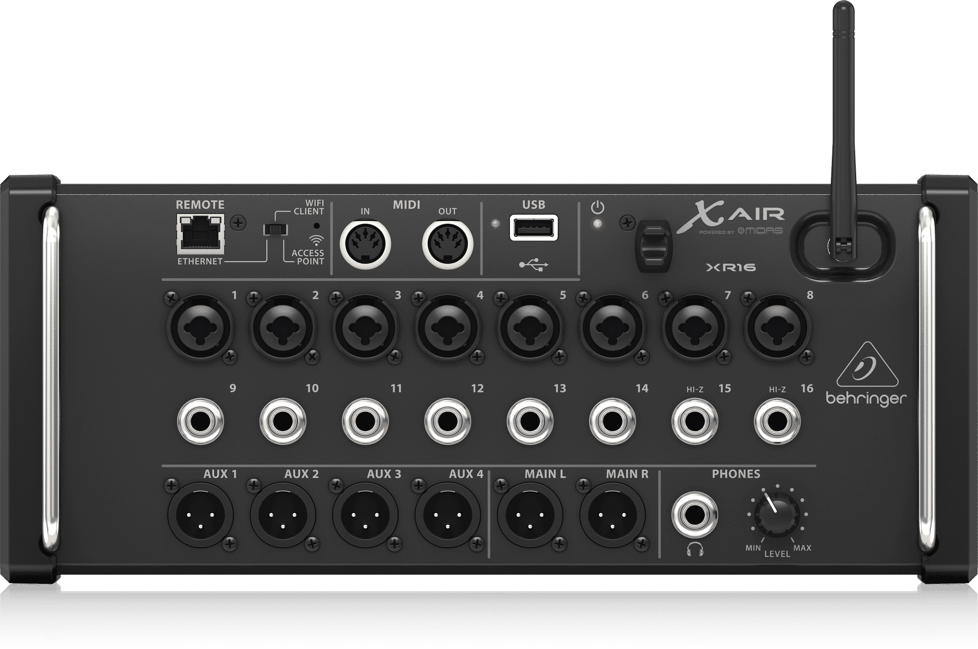 The revolutionary XR16 is a powerhouse 16 input portable/rack-mountable mixer for iPad and Android tablets, and is ideally suited for both live and studio applications, thanks to its 8 award-winning MIDAS-designed mic preamps, convenient integrated WiFi module for wireless control, plus USB connectivity for file storage, system updates and uncompressed stereo recordings via the USB Stereo Recorder. We’ve also included the rack ears and protective bumpers for added flexibility in your studio and stage applications.