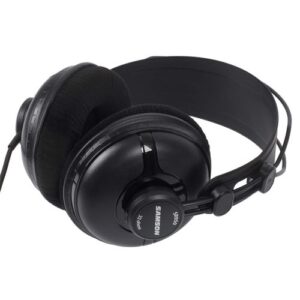 The SR950 Professional Studio Reference Closed-Back Headphones from Samson are designed for engineering, mixing, and audio playback. They feature a closed-back design and 50mm Neodymium drivers. Their self-adjusting headband and velour ear cups are designed to provide a comfortable fit without the need for constant tweaking. A 1/8″ to 1/4″ gold-plated adapter is included.