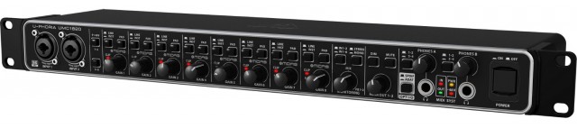The Behringer U-Phoria UMC1820 Audiophile USB Audio/MIDI Interface bridges the gap between your creativity and your fans. This blazingly fast USB 2.0 studio-in-a-box will have you recording your next masterpiece in minutes with all the connectivity required for your microphones, guitars, keyboards and even MIDI devices. Record the perfect vocal right to your computer-based DAW thanks to the 8 astonishingly clear, world-class MIDAS-designed mic preamps, which include +48 Volt phantom powers for condenser microphones, all going through studio-grade 24-Bit/96 kHz converters for the best possible sound quality. It also provides I/O support for S/PDIF, ADAT and S/MUX formats. Whether you’re a singer-songwriter, producer on the go or just need a rock-solid interface for running backing tracks at a gig, the ultra-dependable U-Phoria UMC1820 will help you shine in the digital domain. Studio in a Little Black Box When it’s time to make recording history on your Mac or Windows computer, plug in microphones, instruments or line level sources to the UMC1820’s 8 combination XLR/TRS inputs for the ultimate in studio flexibility! Connect and communicate with MIDI devices to add the benefit of control surfaces to your studio workflow. And since the UMC1820 is compatible with all popular recording software including Avid Pro Tools*, Ableton Live*, Steinberg Cubase and others – it’s ready for anything. 96 kHz Precision You take your tracks seriously