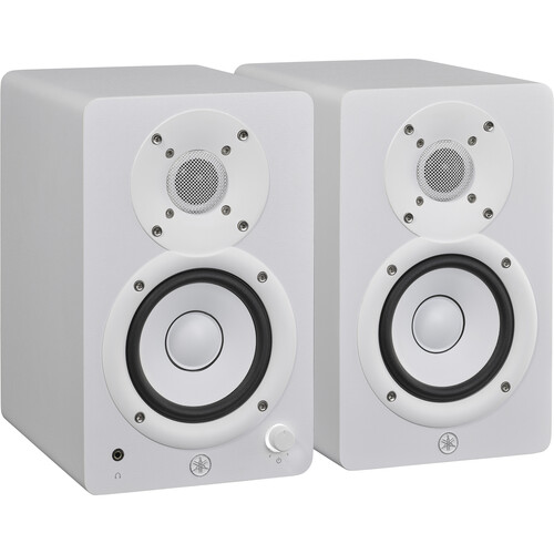 Refining the essence of the respected HS series speakers in a more compact, creator-friendly housing, the white HS4 Studio Monitors from Yamaha are two speakers, one active that powers both speakers, which have 2-way nearfield monitors that provide a wide and accurate frequency response. Designed to deliver uncompromising audio quality for creatives with limited space, the HS4 monitors excel in applications such as music production and video editing.